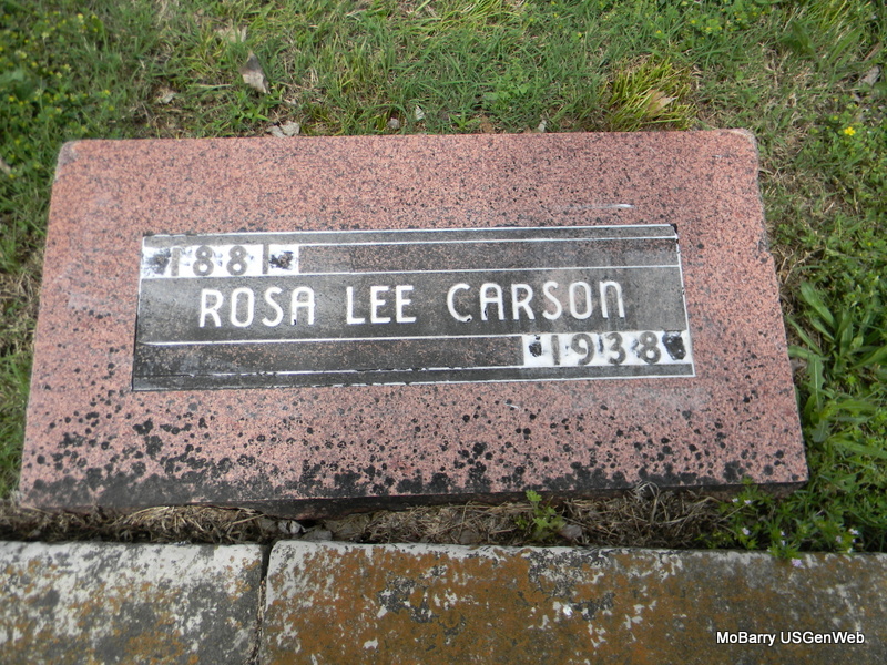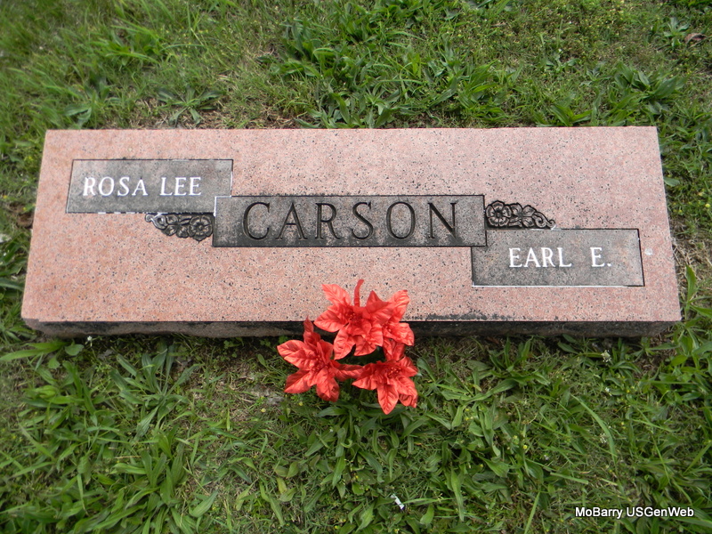 | CARSON, Rosa Lee | 1881 | 1938 | SSW: Earl E. - Research Note: Second wife of Earl Elisha Carson. - Another Stone | Note Phyllis Long Photos Bill Utter |