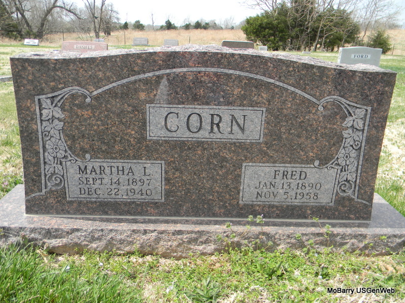 | CORN, William Hendon | Aug. 22, 1856 | Apr. 30, 1934 Rural Wheaton, Barry Co., MO |