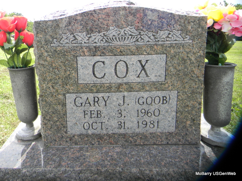 | COX, Gary J. "Goob" | Feb. 3, 1960 | Oct. 31, 1981 | Research Note: Son of Merle C. Cox and Geraldine May Mapes. | Mother's Obit Phyllis Long Photo Bill Utter |