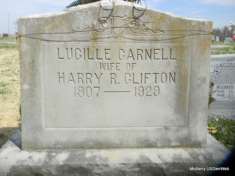 SSW: Elizabeth - Research Note: Son of Tarlton Carnes and Burchett Ballenger. - Cassville Republican, March 6, 1919 - Rocky Comfort: Uncle Jerry Carnes is very low with tuberculosis at present. - Cassville Republican, March 13, 1919 - Rocky Comfort: Uncle Jerry Carnes died at his home one and one-half miles south east of town Friday. He had been in ill health for several years. Deceased was a highly respected citizen of this community and was a member of the Christian church. Funeral services were held at the Christian church Saturday afternoon, conducted by Rev. J. T. Hinds of Rogers, Ark. Interment was made in the city cemetery. We extend our sympathy to the bereaved ones. | Online Newspapers Census Phyllis Long Photo Bill Utter |