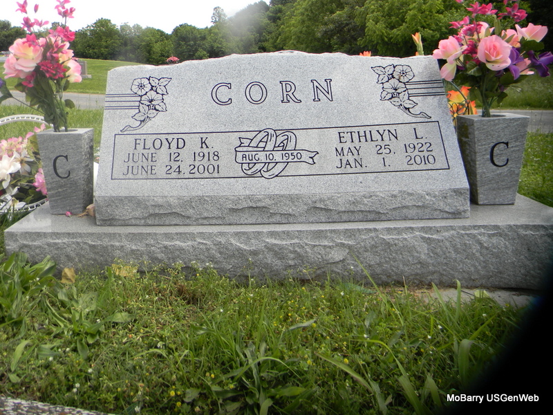 SSW: Floyd K. - Inscription: "Aug. 10, 1950" - Research Note: She was a daughter of James Otto and Monty (Webb) Duncan. On May 2, 1942, she was united in marriage to Clifford Linton, who preceded her in death during World War II. On Aug. 10, 1950, she was united in marriage to Floyd Kenneth Corn, who preceded her in death on June 24, 2001. Also preceding her in death were her parents and a daughter, Sharon (Linton) Parrish. She received her education at Wheaton, graduating with the Class of 1939. She was a devoted Christian and lived and worked in this area her entire life. She managed Kenneth's Sign Shop for her husband for many years. - Another Photo | Cassville Democrat Phyllis Long Photos Jay Trace Photo Bill Utter |