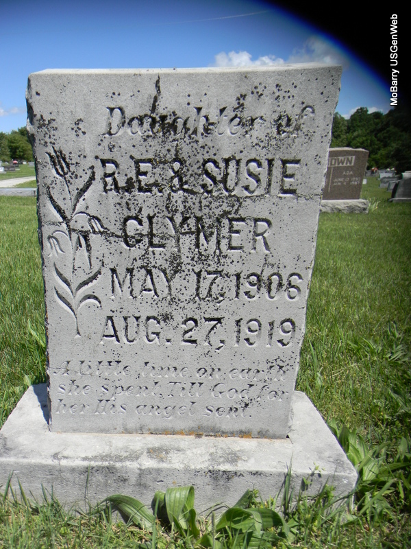 SSW: Joe E. - Research Note: Son of Oliver C. Maxey and Alice Elzada Mallin. Mrs. Frances Pearl Young of Purdy, MO was the informant on the death certificate. Joseph E. Carson, age 19, married Lizzie M. Maxey, age 19, on July 14, 1898 in Pierce City, Lawrence Co., MO. | Death Certificate MO Marriage Records Phyllis Long Photo Bill Utter |