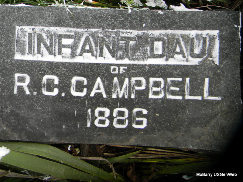 | CAMPBELL, Infant | 1886 | 1886 | Inscription: "Infant Dau. of R. C. Campbell" - Research Note: Daughter of Marshall Campbell and Rebecca Catherine (Long) Campbell. | Note Phyllis Long Photo Bill Utter |