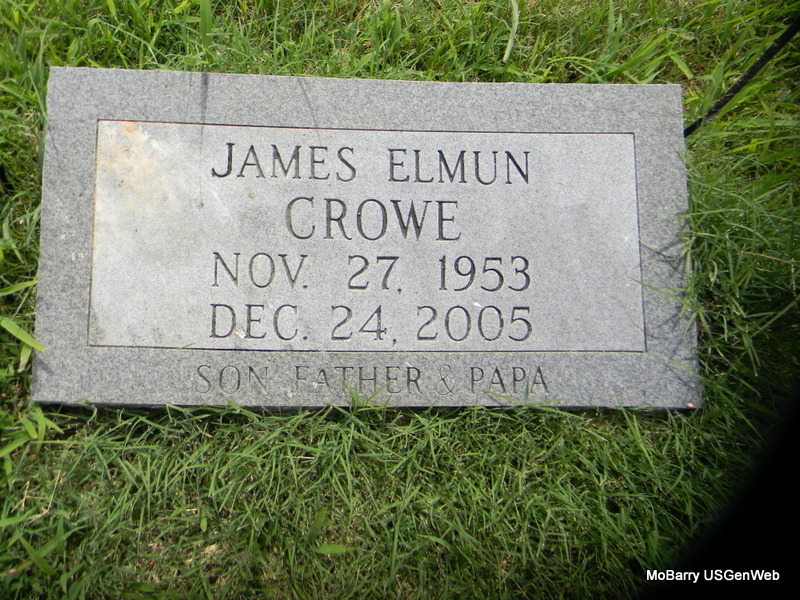 Research Note: Brother to James Elmun Crowe. Son of Billy Crowe and Estelle (Parmley) Vaughn. Usual residence was rural Rocky Comfort, McDonald Co., MO. His motorcycle collided head on with a car and he was thrown through the windshield of the oncoming car. Accident occurred East of the intersection of Hwy 76 and county road E. | Death Certificate Phyllis Long Photo Bill Utter |