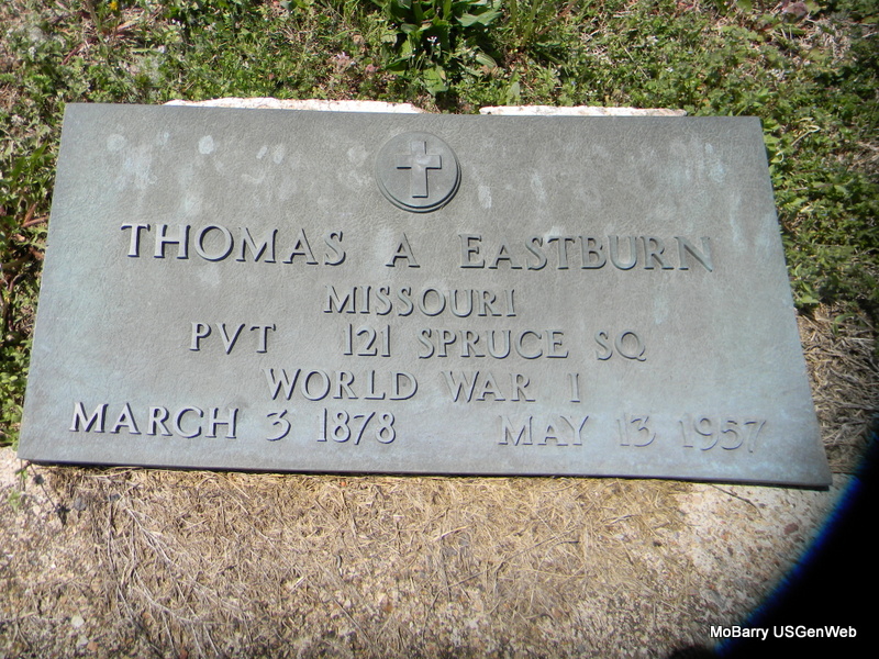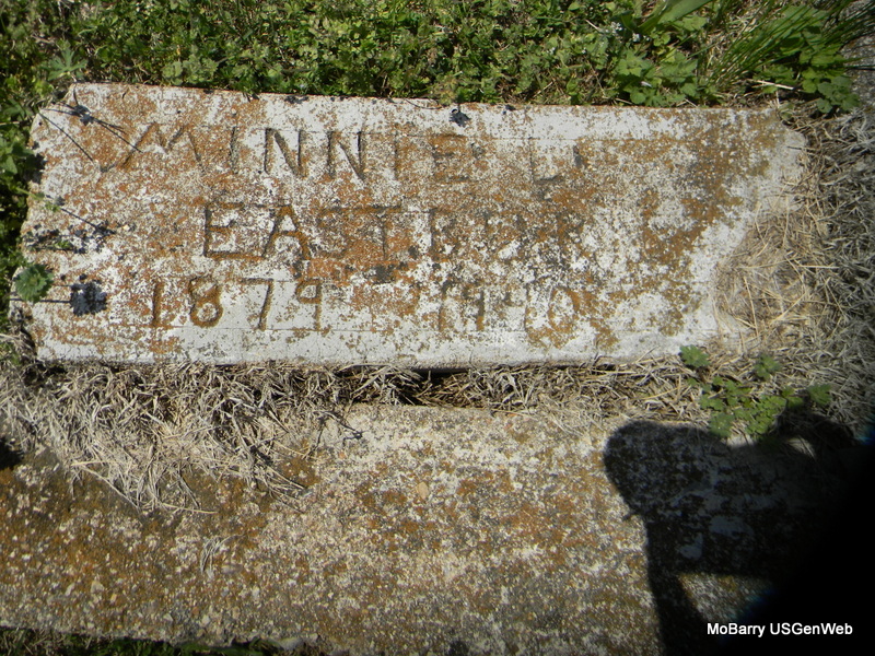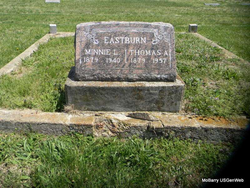 SSW: Minnie L. - Research Note: Son of Jobe Eastburn and Ehelin Ann Romine. The military stone has his birth date as Mar. 3, 1878. Stone with Minnie has 1879. - Another Photo - Military Stone - Inscription: "PVT 121 SPRUCE SQ, WW I" | Census Phyllis Long Photos Bill Utter |