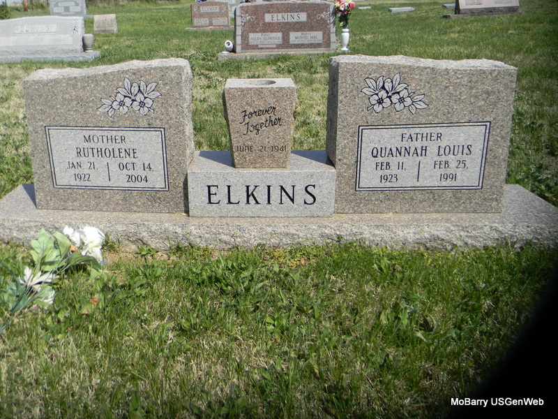 | ELKINS, Quannah Louis | Feb. 11, 1923 | Feb. 25, 1991 | SSW: Rutholene - Inscription: "Forever Together June 21, 1941" - Research Note: Son of Allen Eldridge Elkins and Montie Mae Brown. - Back of Stone | Census Phyllis Long Photos Bill Utter |