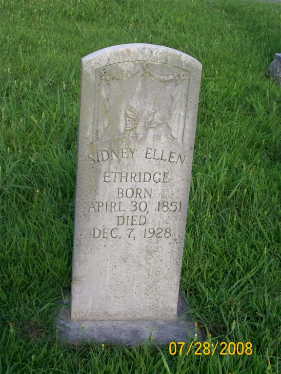 | ETHRIDGE, Sidney Ellen (RALEIGH) (BULLARD) | Apr. 30, 1851 Owen Co., IN |