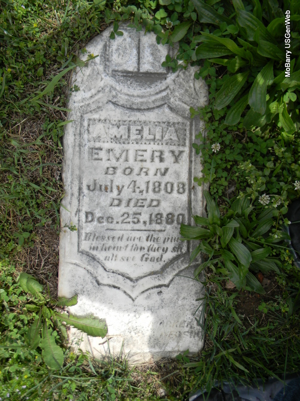 | EMERY, Amelia Ann (BLYTHE) | July 4, 1808 | Dec. 25, 1880 | Research Note: Pretty well convinced that this is Amelia Ann Blythe, wife of Joseph Jackson Embrey. Emery on the stone, should be Embrey. - 1860 Census, Mountain, McDonald, Missouri - Joseph J. Embrey, farmer, age 52, born GA; Amelia, age 52, born TN; John, age 20, born TN; Elizabeth, age 22, born TN; Charlotte, age 19, born TN; Joseph, age 18, born TN; William, age 17, born TN; Murry, age 16, born TN; Blythe, age 14, born TN; Robert, age 12, born TN; Amelia, age 10, born TN. - 1870 Census,Richwood, McDonald, Missouri - Joseph has died. - 1880 Census, Richwood, McDonald, Missouri - Amelia is age 71, widowed. Children living with her are Sarah Elizabeth, age 40, Charlotte, age 39, Murry S., age 35, and Amelia, age 29. Son William and family are living next door. | Census Phyllis Long Photo Bill Utter |