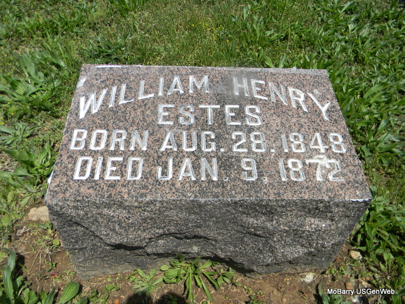 | ESTES, William Henry | Aug. 28, 1848 | Jan. 9, 1872 | Research Note: His wife was Georgia Ella Gallaher. Son of Elisha M. Estes and Elizabeth Davis. - Plot Stone | Census Phyllis Long Photos Bill Utter |