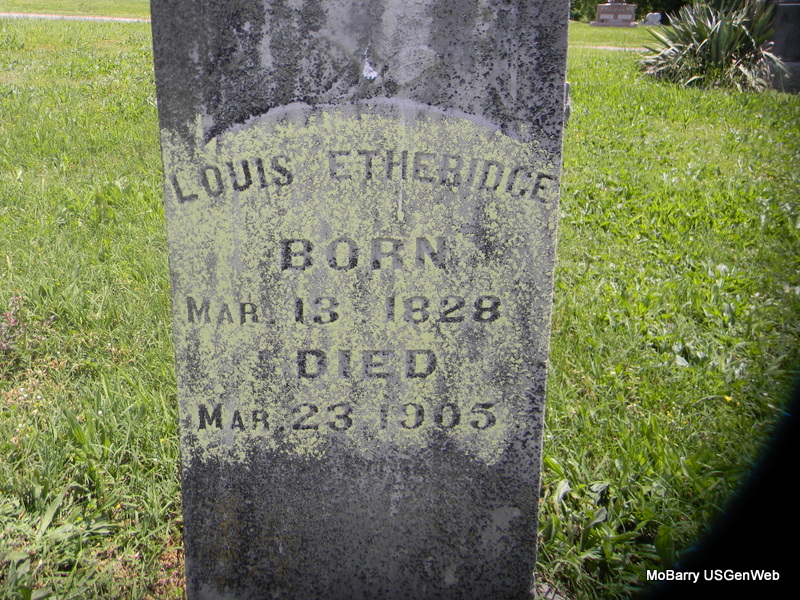 | ETHERIDGE, Louis | Mar. 13, 1828 | Mar. 23, 1905 | Research Note: He first married Nancy Ellen Carson. His second wife was Sidney Ellen. - Another Photo | Photo Jay Trace Photo Bill Utter |