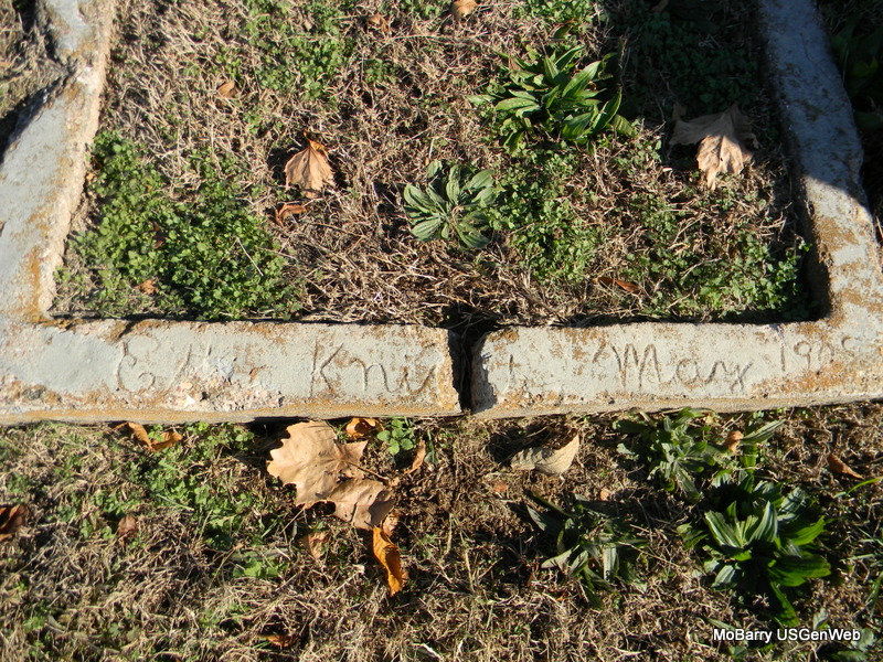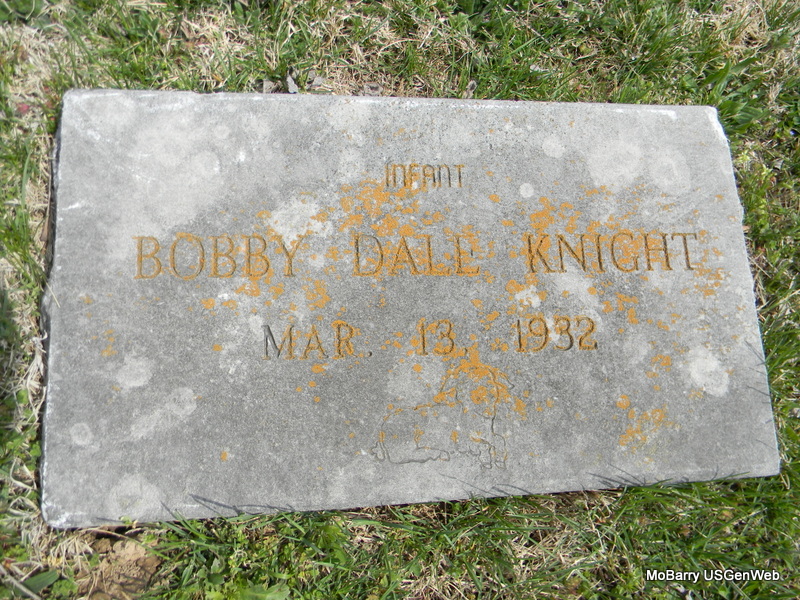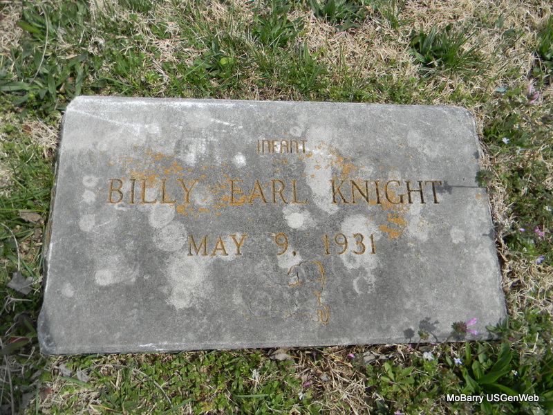 | KNIGHT, Billy Earl | No Date | May 9, 1931 | Inscription: "Infant" - Research Note: Stone matches the one for Bobby Dale, his brother. Son of Ora O. Knight born MO and Luella Bunnell born MN. | Note Phyllis Long Photo Bill Utter |