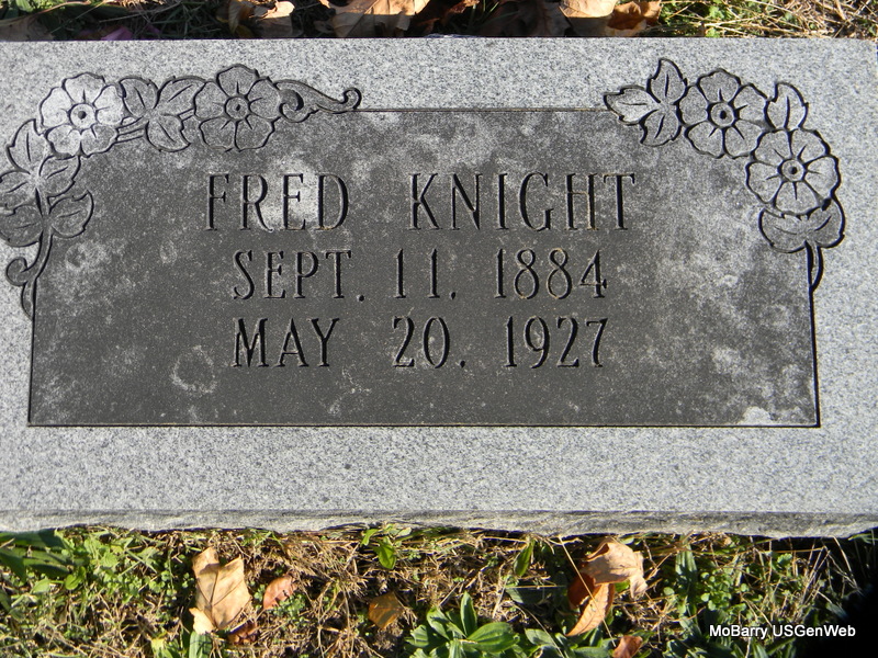 Research Note: Son of George Washington Knight and Amanda Ellen Shipman. Ray Knight of Rocky Comfort, MO was the informant. Fred Knight, age 24, married Laura Michaels, age 22, on Mar. 31, 1907 in Barry Co., MO. | Death Certificate MO Marriage Records Phyllis Long Photo Bill Utter |