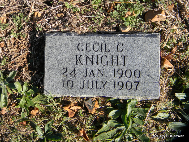 | KNIGHT, Cecil C. | Jan. 24, 1900 | July 10, 1907 | Research Note: Son of George Washington Knight and Amanda Ellen Shipman. - Another Photo | Census Phyllis Long Photos Bill Utter |