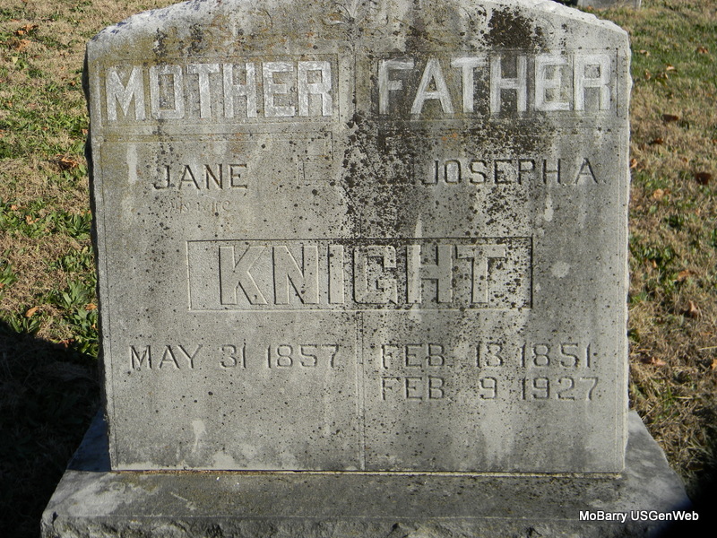 | KNIGHT, Margaret "Jane" (JOHNSON) | May 31, 1857 IN |