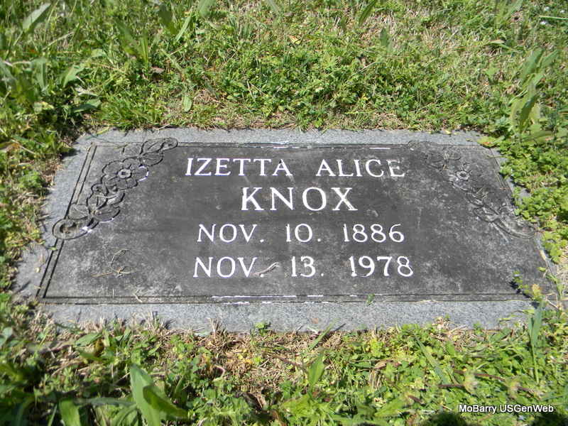 | KNOX, Izetta Alice (SMITH) | Nov. 10, 1886 | Nov. 13, 1978 | Research Note: Daughter of John T. Smith and Isabel Harden. Her husband was Henry Knox. | Census Phyllis Long Photo Bill Utter |