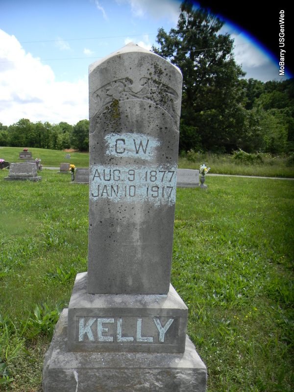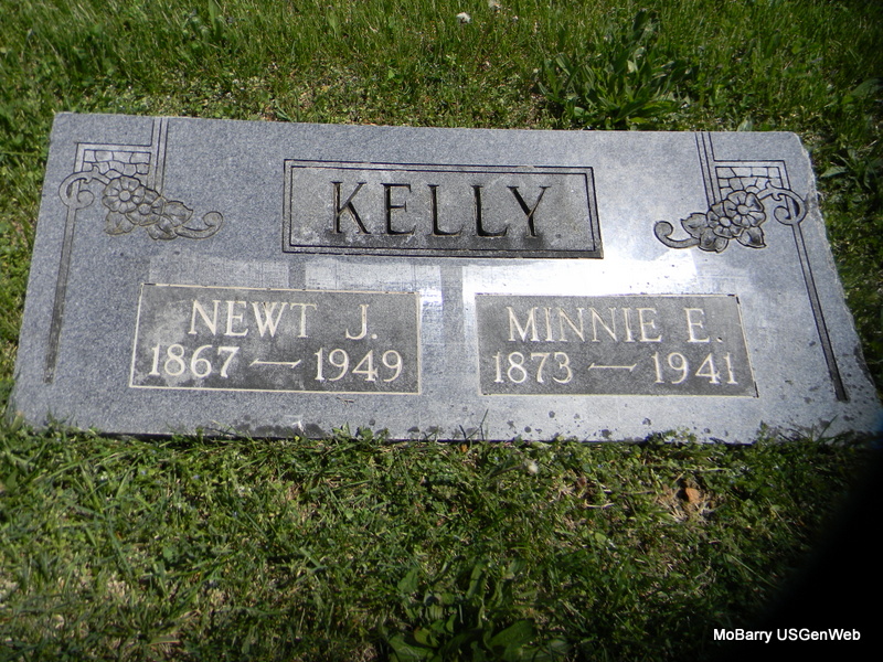 Research Note: His wife was Frances Kelly. Son of James Riley Kelly and Polly Randall, both born TN. Ernest Kelly of Monett, MO was the informant on the death certificate. - First wife was Amy A. Corley. Second wife was Cynthia Theo Kimbrough. Third wife was Sarah Frances Bowers. - Plot Stone | Death Certificate Kelly Family Chart Phyllis Long Photos Bill Utter |