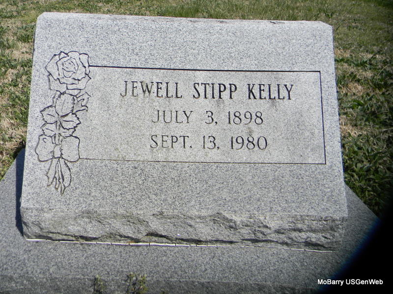 | KELLY, Jewell (STIPP) | July 3, 1898 | Sept. 13, 1980 | Research Note: Third wife of Vernon M. Kelly. Daughter of Francis Marion Stipp and Martha "Mattie" L. Hearn. Listed as single and the housekeeper of Vernon and children in the 1940 census. | Census Phyllis Long Photo Bill Utter |