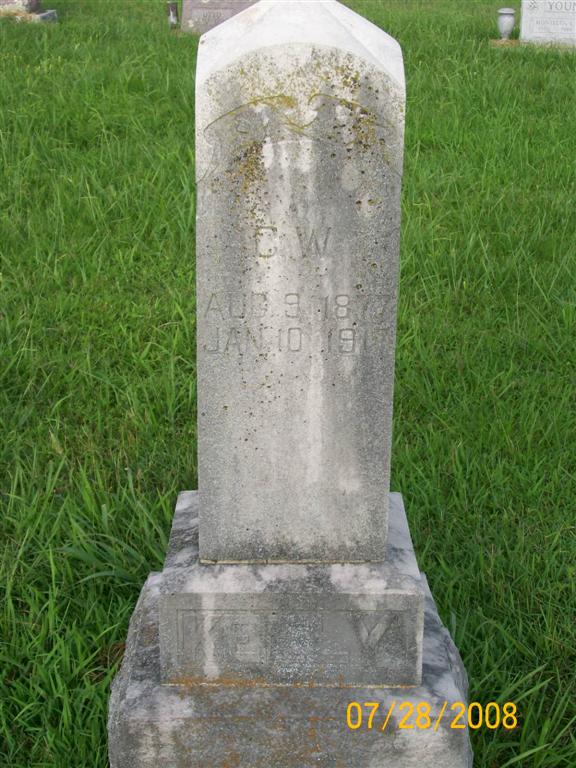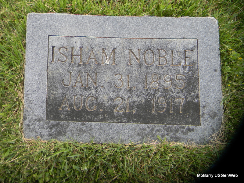 | KELLY, Isham Noble | Jan. 31, 1895 | Aug. 21, 1917 | Research Note: Son of George Riley Kelly and Cynthia Theo Kimbrough. His wife was Myrtle J. Carter. Married on Feb. 15, 1912 in Newton Co., MO. - Cassville Democrat, Aug. 25, 1917 - Killed By Lighting: Isom Kelley, a farmer residing near Rocky Comfort, was killed by lightning, Tuesday afternoon. He was killed while plowing. Mr. Kelly is reported to have been a good man. His untimely death is regretted by all. - Plot Stone | Online Obit Census MO Marriage Records Phyllis Long Photos Bill Utter |