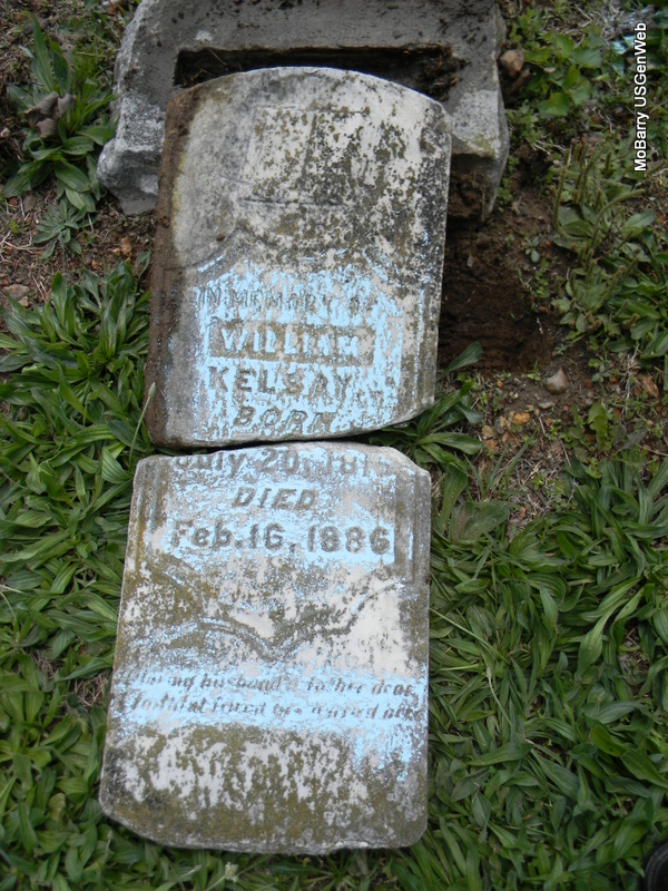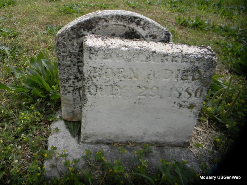 | KELLY, Infant Daughter | July 29, 1880 | July 29, 1880 | Inscription: "Infant Dau. of H. B. and M. A. Kelly" - Research Note: Stone broke in half. Daughter of Henry Boone Kelly and Madosa Ann Scott. - Another Photo | Note Phyllis Long Photos Bill Utter |