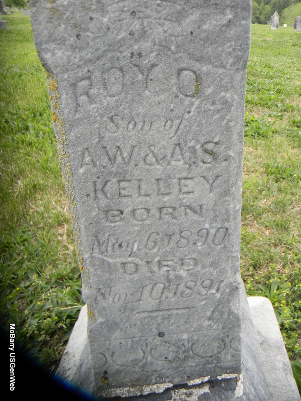 | KELLEY, Roy R. | May 6, 1890 | Nov. 10, 1891 | Inscription: "Son of A. W. and A. S. - Research Note: Spelled Kelley on the stone but should be Kelly. Son of Allison Woodville Kelly and America S. Autry. - Another Photo | Note Phyllis Long Photo Bill Utter |