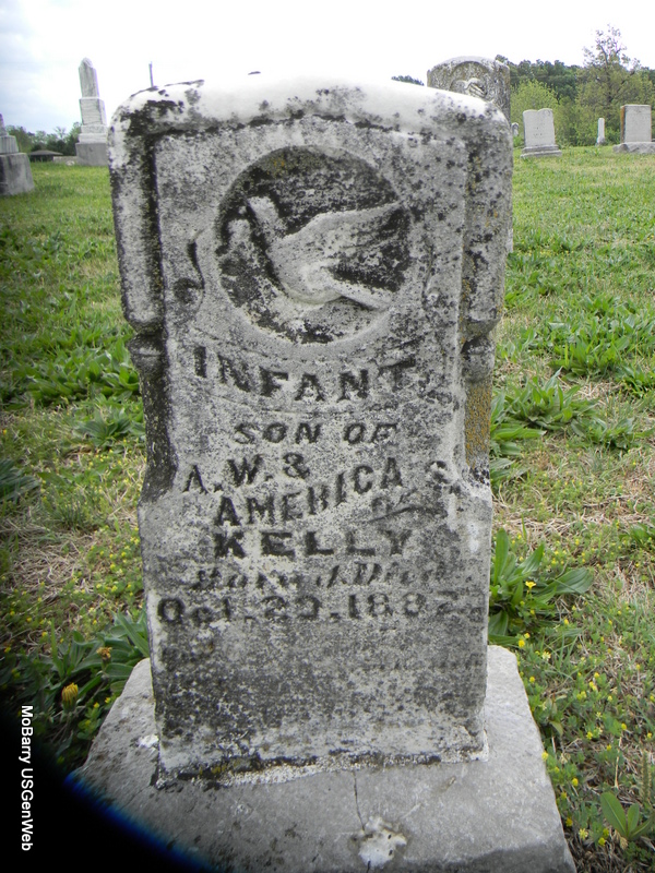 | KELLY, Infant Son | Oct. 20, 1882 | Oct. 20, 1882 | Inscription: "Infant Son of A. W. and America" - Research Note: Son of Allison Woodville Kelly and America S. Autry. | Note Phyllis Long Photo Bill Utter |