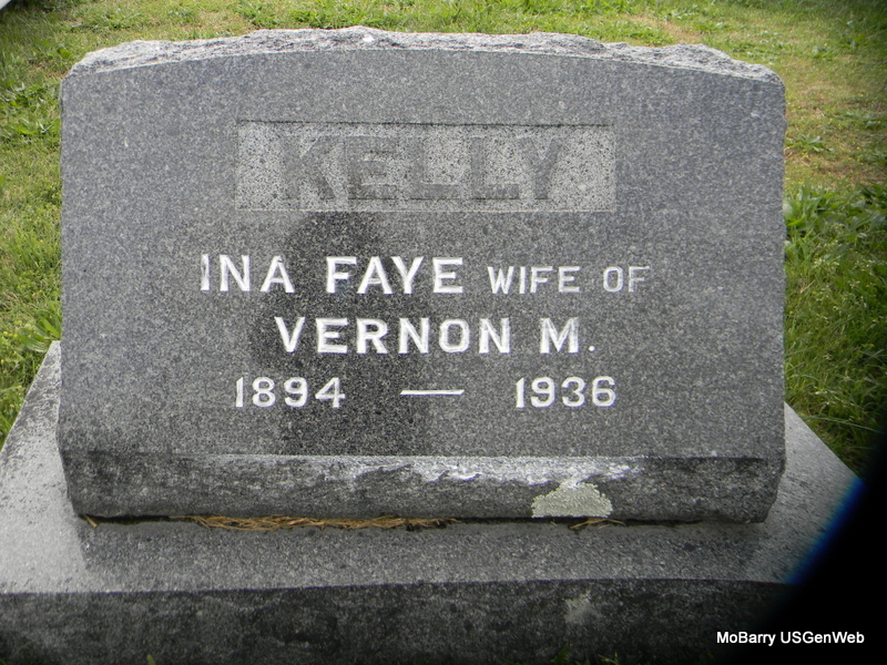 | KELLY, Ina Faye (STIPP) | 1894 | 1936 | Inscription: "Wife of Vernon M." - Research Note: Second wife of Vernon M. Kelly. Daughter of Francis Marion Stipp and Martha "Mattie" Hearn. | Census Phyllis Long Photo Bill Utter |