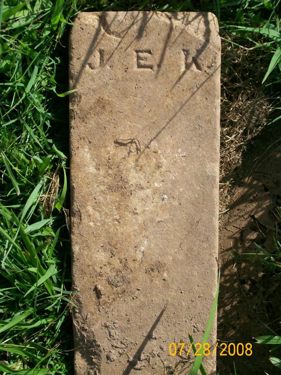 | K., J. E. | No Date | No Date | Research Note: Footstone with initials J. E. K. - Another Photo | Photo Jay Trace Photo Bill Utter |