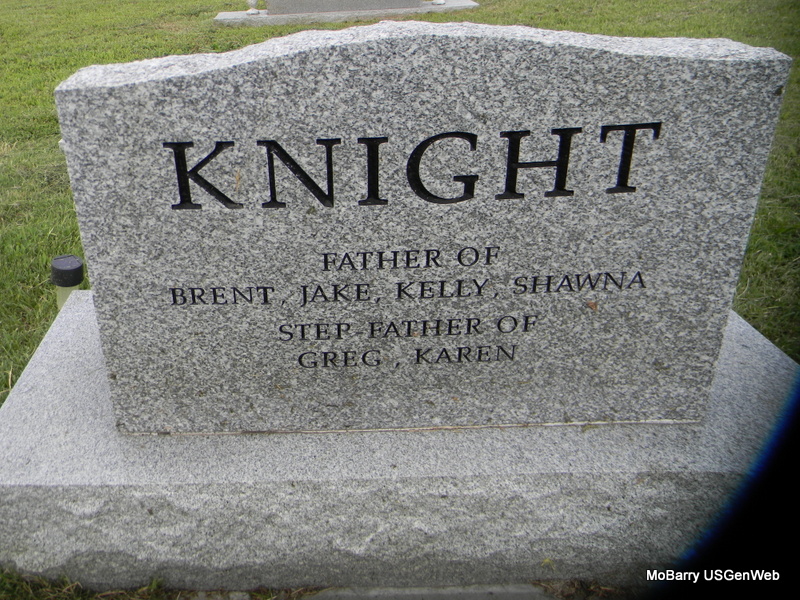 May 15, 2006 | Inscription: "Son of Jo and Wayne" - Research Note: Kurt Bradley Knight, age 52, formerly of Fairview, died of an apparent heart attack. He was a son of the late George Wayne and Norma Jean (Harlan) Knight. He spent his childhood in Fairview and St. Joseph. | Cassville Democrat Phyllis Long Photo Bill Utter |