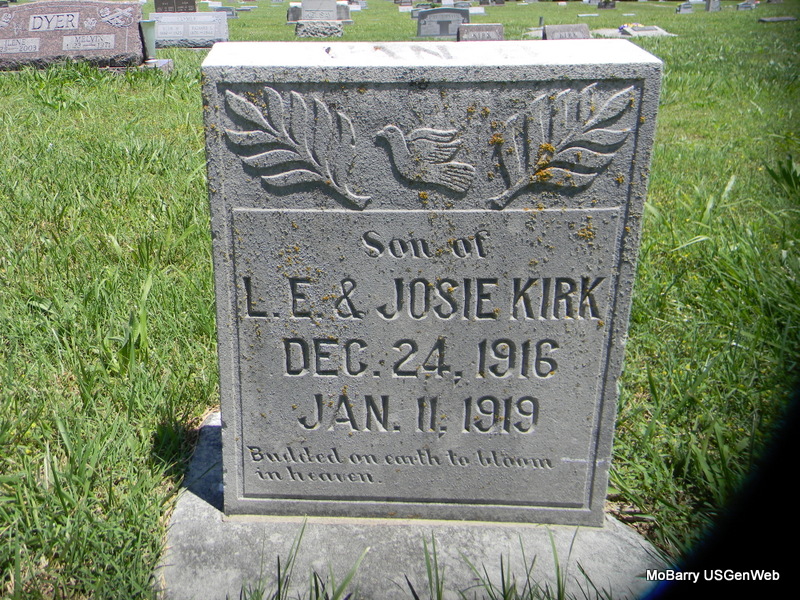 | KIRK, Ivan Bard | Dec. 24, 1916 | Jan. 11, 1919 | Inscription: "Son of L. E. and Josie Kirk" - Research Note: Son of Loral Edwin Kirk and Josie E. Deal. - Another Photo | Note Phyllis Long Photo Bill Utter |