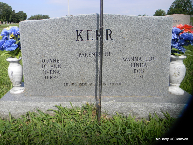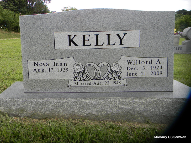 | KELLY, Neva Jean (MEVEY) | Aug. 17, 1929 | No Date | SSW: Wilford A. - Inscription: "Married Aug. 22, 1948" - Research Note: Neva Jean Mevey, age 19, married Wilford A. Kelly, age 23, on Aug. 22, 1948 in Jasper Co., MO. Daughter of James R. and Irene L. Mevey. | MO Marriage Records Census Phyllis Long Photo Bill Utter |