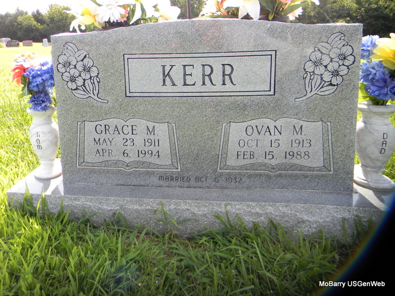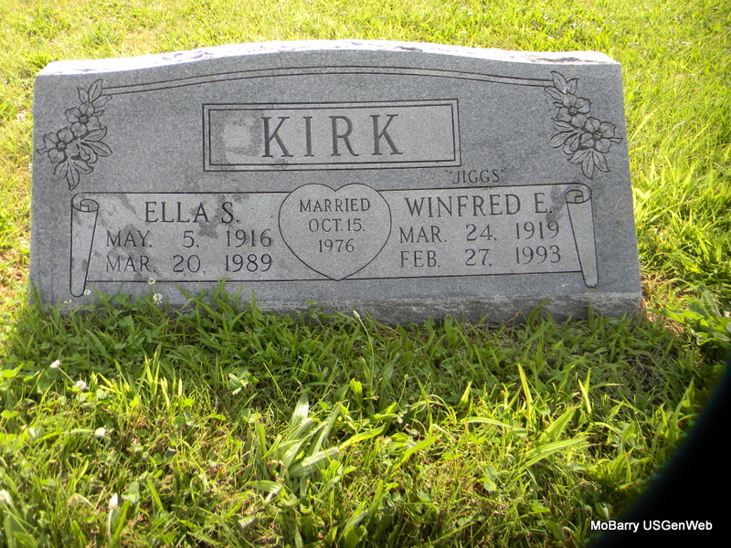 SSW: Winfred E. - Inscription: "Married Oct. 15, 1976" - Research Note: Daughter of Charles Oscar Fortner and Josephine Adams. She moved to Exeter from Wheaton in 1987. She lived at Wheaton most of her life. She was a retired nurse's aide and a homemaker. Her first husband, Gus LaKemper, preceded her in death. She married Winfred Kirk on Oct. 26, 1976, at Miami, Okla. | Joplin Globe Census Phyllis Long Photo Bill Utter |