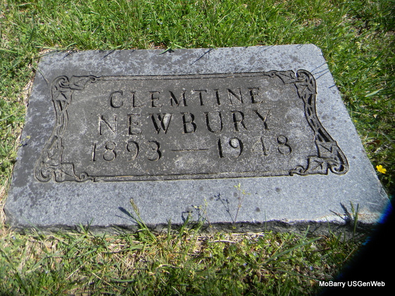 | NEWBURY, Clemtine | 1893 | 1918 | Research Note: Wife of Boyd Evert Newbury. Clementine spelled Clemtine on the stone. | Census Phyllis Long Photo Bill Utter |