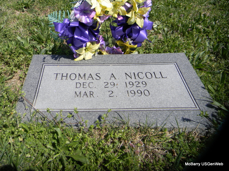 | NICOLL, Thomas A. | Dec. 29, 1929 | Mar. 2, 1990 | Research Note: Son of Woolford and Mary F. Nicoll. | Census Phyllis Long Photo Bill Utter |
