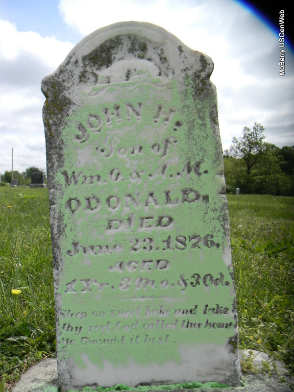 | O'Donald, John H. | Abt. 1874 | June 23, 1876 | Inscription: "Aged 1Y 3Mo 30D" - Another Photo | Photos Bill Utter |