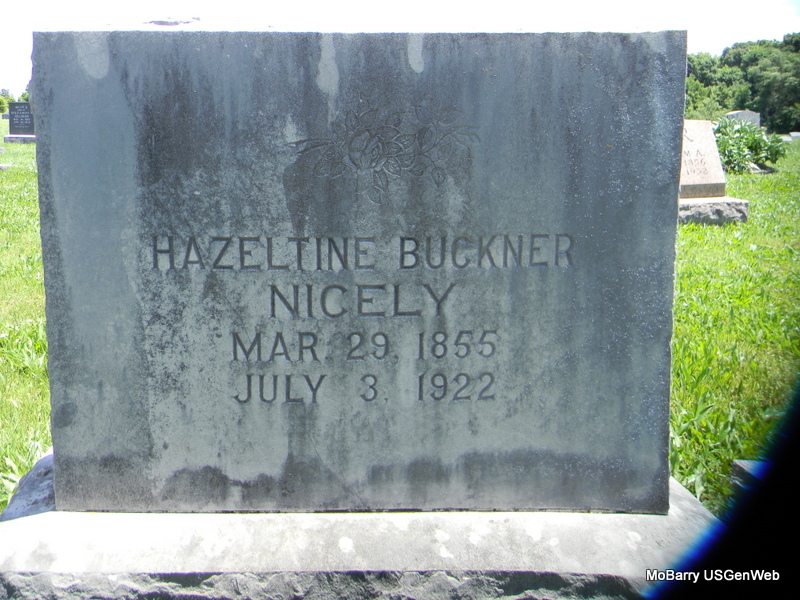 | NICELY, Hazeltine Parlenia (BUCKNER) | Mar. 29, 1855 TN |