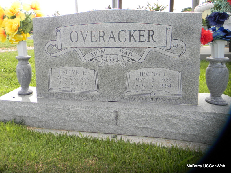 | OVERACKER, Evelyn Eldora (PARMLEY) | Aug. 23, 1926 | Aug. 18, 1992 | SSW: Irving E. - Research Note: Daughter of William Elmun Parmley and Vivian Faye Nelson. | Census Phyllis Long Photo Bill Utter |