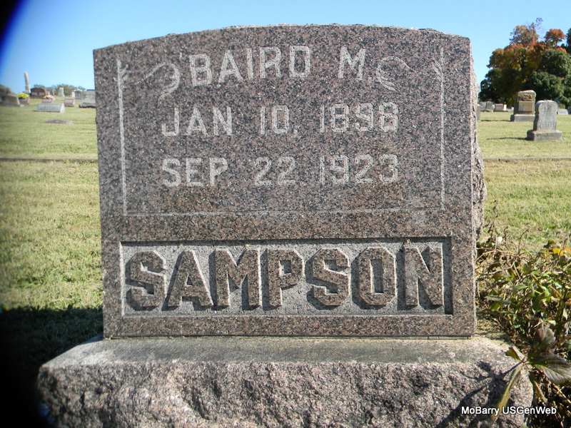 | SAMPSON, Baird M. (FORD) | Jan. 10, 1898 | Sept. 22, 1923 Rocky Comfort, McDonald Co., MO |