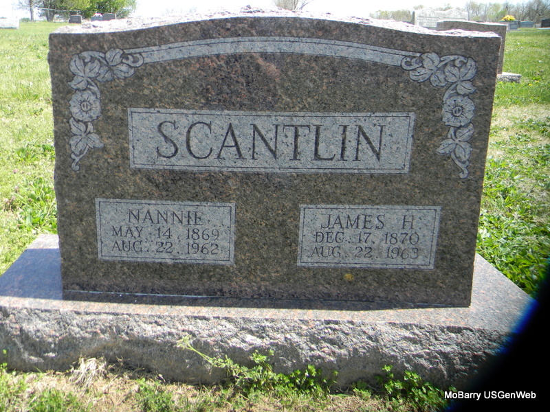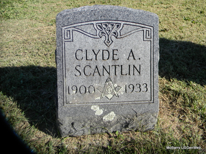 SSW: Nannie - Research Note: Usual residence was Exeter, Barry Co., MO. Son of Jesse Scantlin and Elizabeth Hamilton. He was a retired farmer. Florence Diem of Purdy, Barry Co., MO was the informant on the death certificate. - He lived most of his life in the Powell area where he was a farmer. After retiring he moved to Exeter. He was a member of the Comfort Lodge 533 AF and AM of Wheaton. His wife, Nannie, died Aug. 23, 1962. | Death Certificate McQueen Funeral Home Phyllis Long Photo Bill Utter |