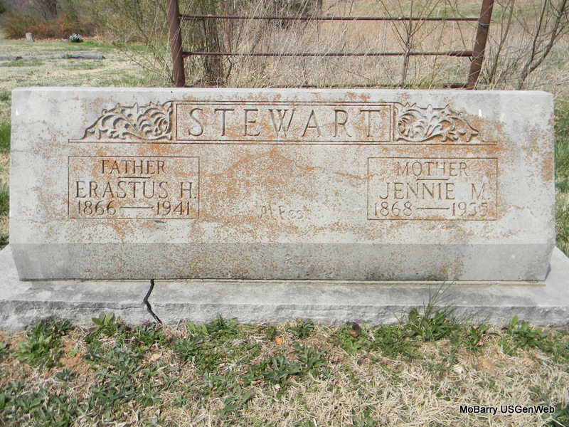 SSW: Erastus H. - Research Note: Daughter of David Jefferson Utter and Christina Hunt. - Born Apr. 28, 1868 in Franklin, IN, she lived several years in Newton Co. and had lived in the Rocky Comfort community for the last 23 years. She entered a rest home in Carthage several months ago. She had been a patient in the hospital since Friday. Her husband, E. H. Stewart, a farmer and merchant, died Oct. 28, 1941. Surviving are two daughters, Mrs. Erhmin Smith of Tulsa, OK and Mrs. Rose Thompson of Milwaukee, OR; a son Fred Stewart of Tulsa, OK; eight grandchildren, 13 great-grandchildren and one great-great-grandchild. | Census Obit Phyllis Long Photo Bill Utter |