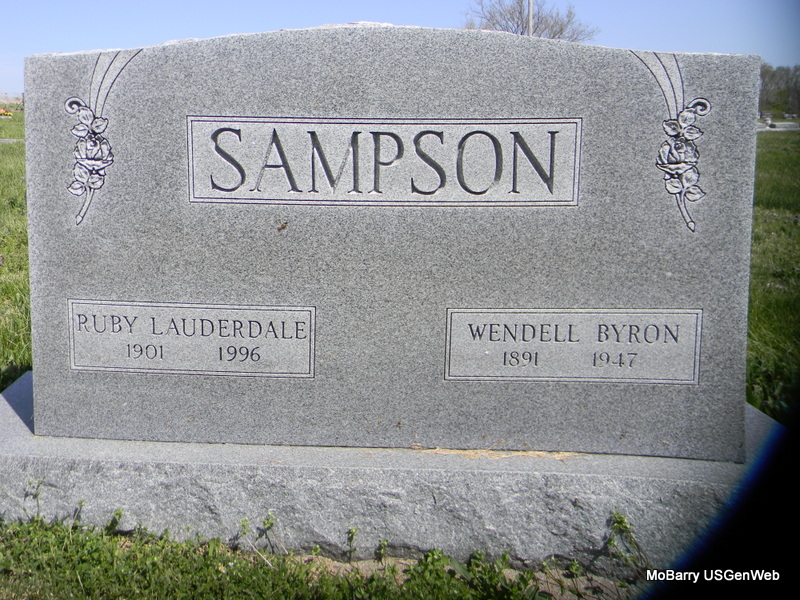 | SAMPSON, Ruby (LAUDERDALE) | 1901 | 1996 | SSW: Wendell Byron - Research Note: Daughter of James Lafayette Lauderdale and Lou Lamberson. Ruby Lauderdale married Wendell B. Sampson on June 19, 1924 in Neosho, Newton Co., MO. Wendell's second wife. | MO Marriage Records Census Phyllis Long Photo Bill Utter |