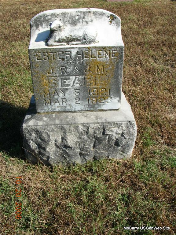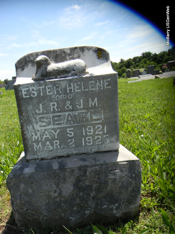 | SEARL, Esther Helene | May 5, 1921 | Mar. 2, 1923 | Inscription: "Dau. of J. R. and J. M." - Another Photo | Photo Patty McWilliams Photo Bill Utter |