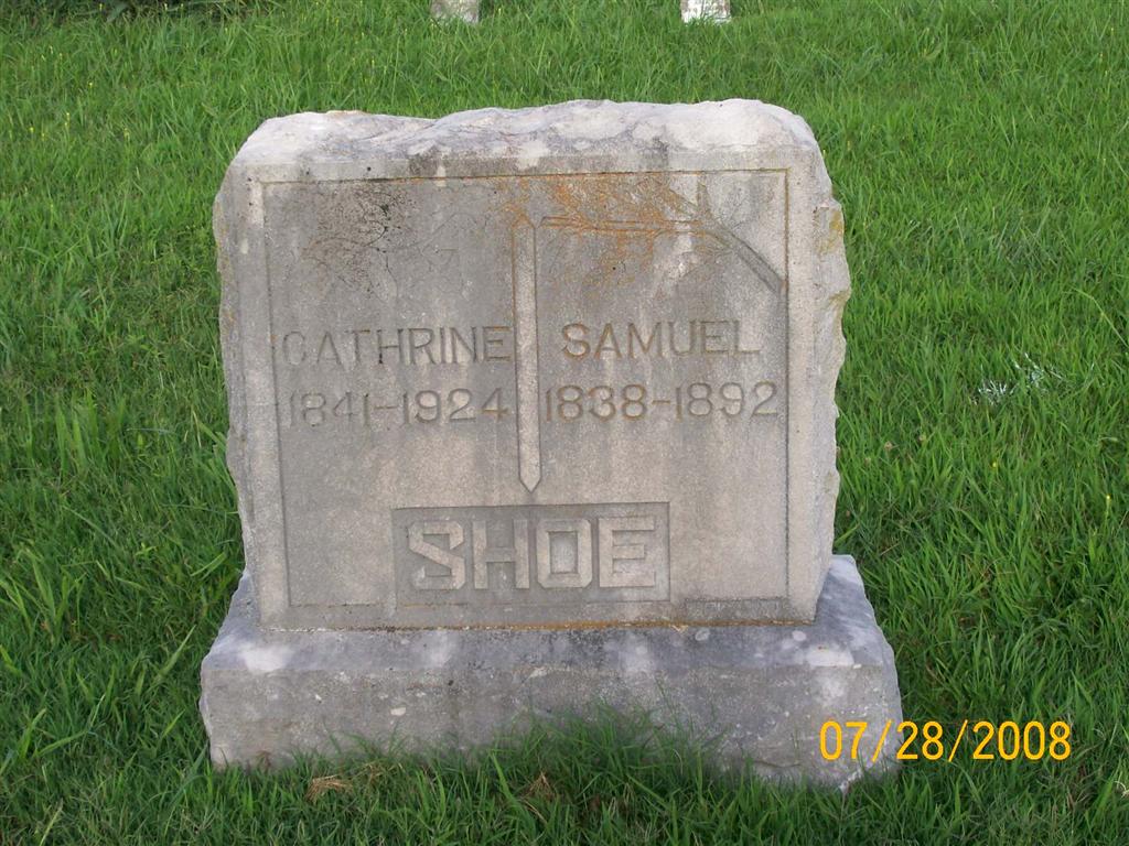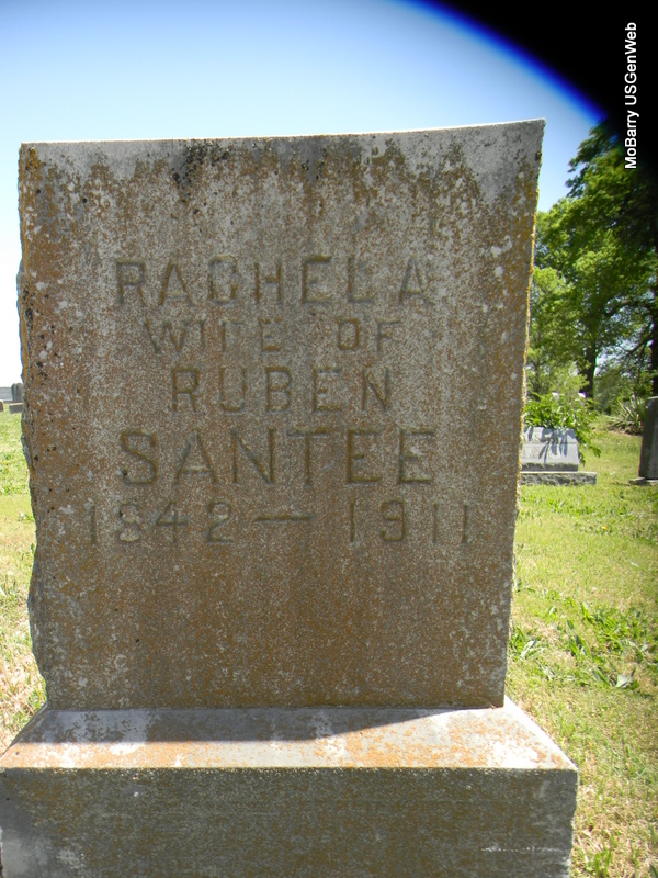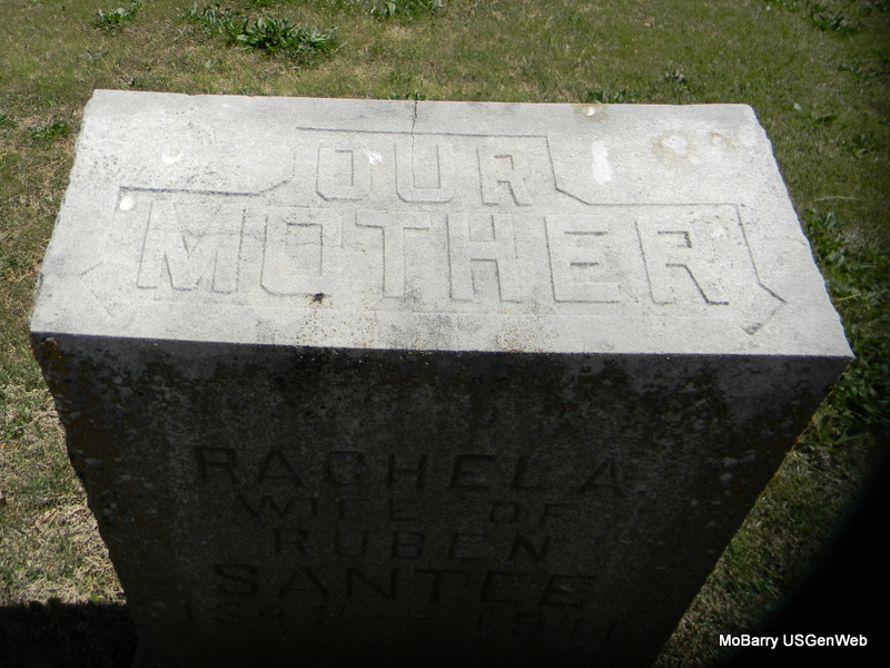 | SANTEE, Rachel Ann (SHOE) | 1842 | 1911 | Inscription: "Wife of Ruben" - Research Note: Daughter of Jacob Shoe and Mary Oswalt. Rachel Ann Shoe and Reuben Santee were married May 24, 1861 in Kosciusko County, Indiana. - Another Photo | IN Marriage Records Census Phyllis Long Photos Bill Utter |