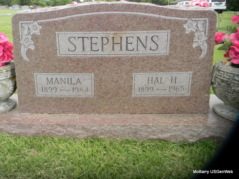SSW: Manila - Research Note: Fairview, Newton Co., MO resident. Son of John Hamilton Stephens and Effie Frances Gustafison. Manila Stephens was the informant on the death certificate. - Military Stone - Inscription: "MISSOURI PVT STU ARMY TNG CORPS WW I" | Death Certificate Census Phyllis Long Photos Bill Utter |