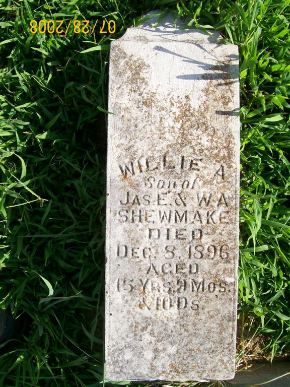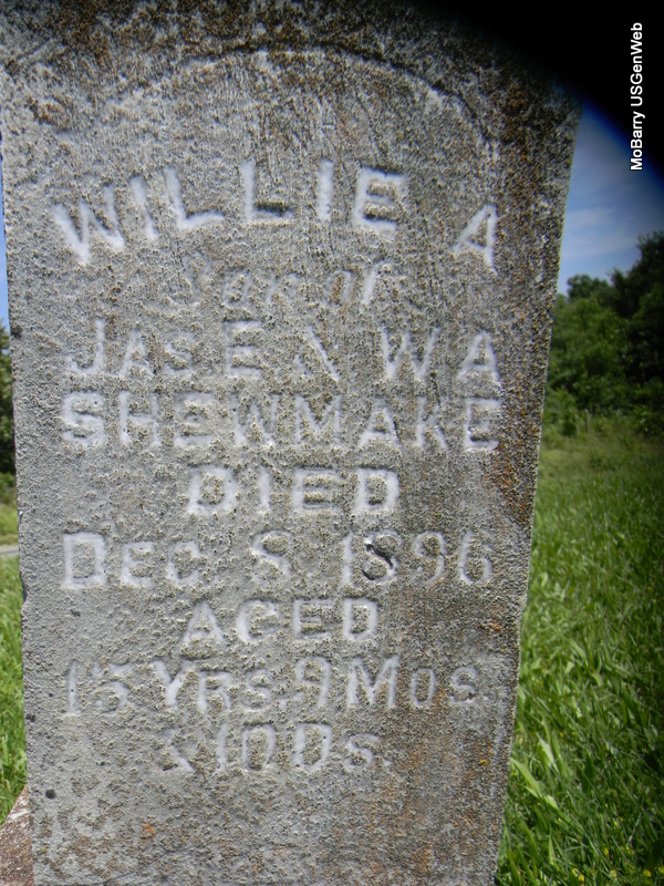 | STIPP, Charles R. | 1872 | 1889 | SSW: Mother Susan and Father Henry - Inscription: "Son of H. and S. J." - Research Note: Son of Henry Martin Stipp and Susannah (Taylor) Shepherd. | Census Phyllis Long Photo Bill Utter |