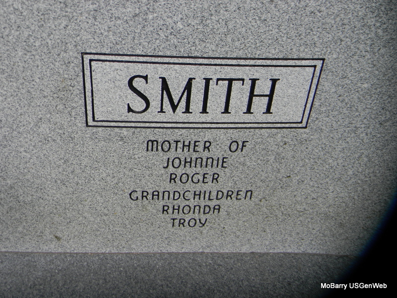 SSW: Vernon H. - Inscription: "Married Apr. 25, 1943" - Research Note: She was a daughter of John and Lula (Andrews) Ridenour. On April 25, 1943, she was united in marriage to the love of her life, Vernon Still and to this union three daughters and one son were born. She was preceded in death by her husband of sixty-two years; a daughter, Jeanie and three brothers. She lived most of her life in Barry County. In 1960, she moved to Green Forest, Ark., returning to Barry County in 1971, where she resided in the Ridgley community. She was a member of Ridgley Southern Baptist Church and an honorary lifetime member of the Wheaton Saddle Club. She donated a lot of time and effort making pies and soups for the Thomas Hollow Fox Hunt, along with cooking for the community in times of need. - Back of Stone | Fohn Funeral Home Phyllis Long Photos Bill Utter |