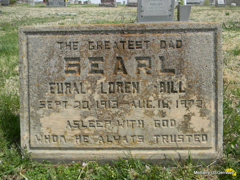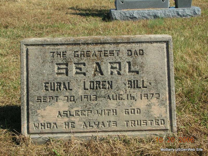 | SEARL, Eural Loren "Bill" | Sept. 20, 1913 | Aug. 16, 1972 | Research Note: Son of George Searl and Mary Elizabeth Ridenour. - Another Photo | Census Phyllis Long Photo Patty McWilliams Photo Bill Utter |