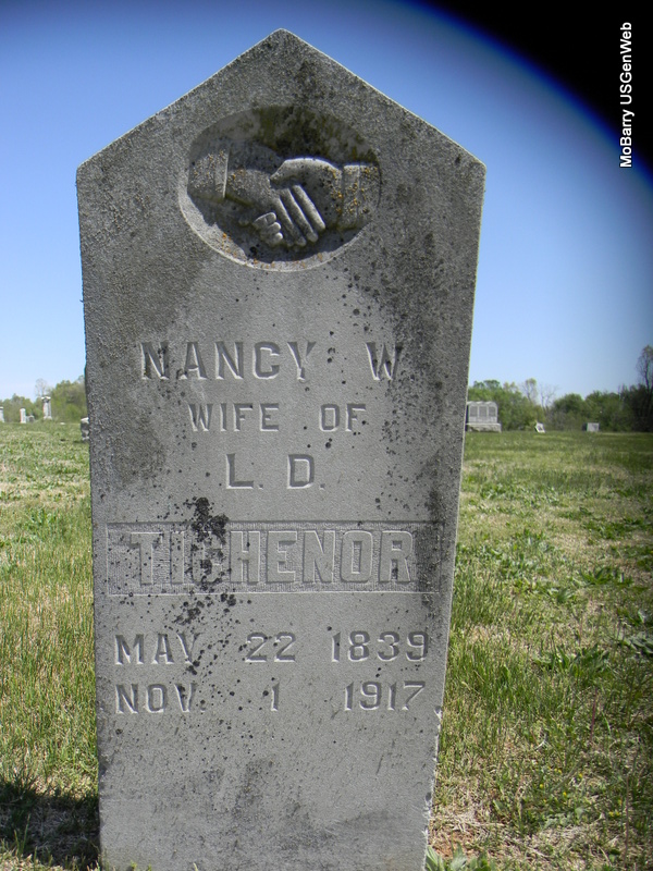 | TICHENOR, Nancy Wagner (WRIGHT) | May 22, 1839 | Nov. 1, 1917 | Inscription: "Wife of L. D." - Research Note: Daughter of Fisher Amos Wright and Susanna Pence. Wife of Lorenzo Dow Tichenor. | Census Phyllis Long Photo Bill Utter |