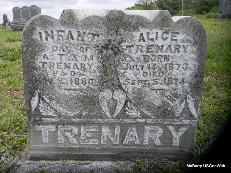 | TRENARY, Alice | July 14, 1873 | Sept. 5, 1874 | SSW: Infant - Research Note: Daughter of Adam Trenary and Margaret Phillips. | Note Phyllis Long Photo Bill Utter |