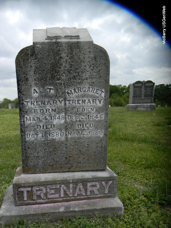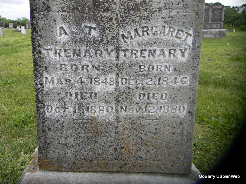 | TRENARY, Adam T. | Mar. 4, 1848 | Oct. 16, 1880 | SSW: Margaret - Research Note: Son of Singleton Warner Trenary and Lydia Ritter. - Another Photo | Census Phyllis Long Photos Bill Utter |