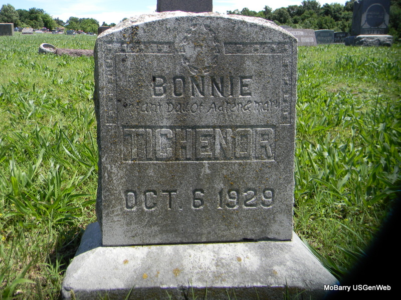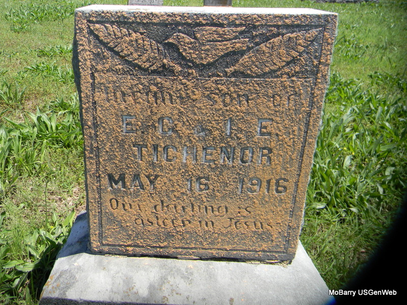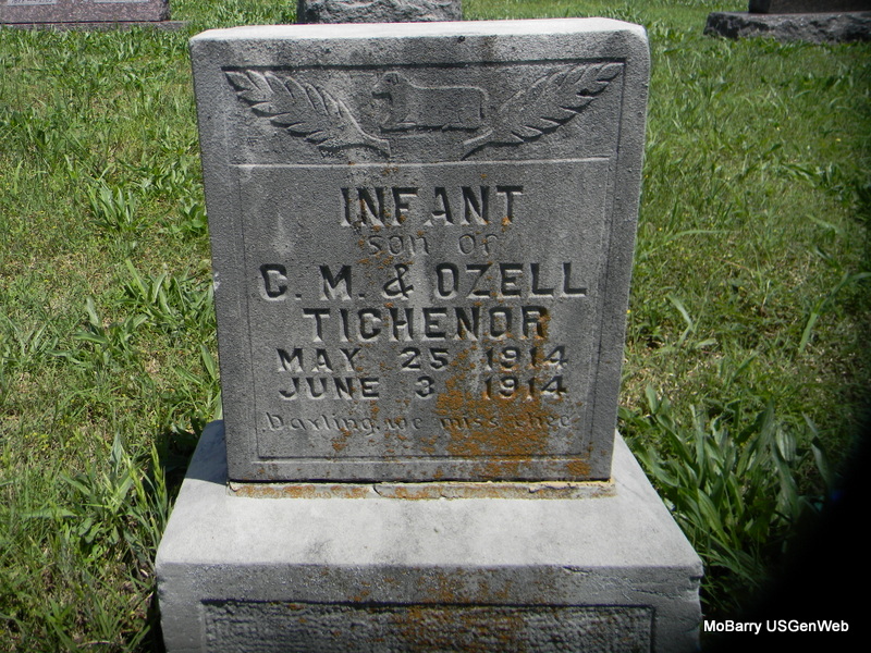 | TICHENOR, Infant | May 25, 1914 | June 3, 1914 | Inscription: "Infant Son of C. M. and Ozell" - Research Note: Son of Curtis Tichenor and Ozell Bowman. | Note Phyllis Long Photo Bill Utter |